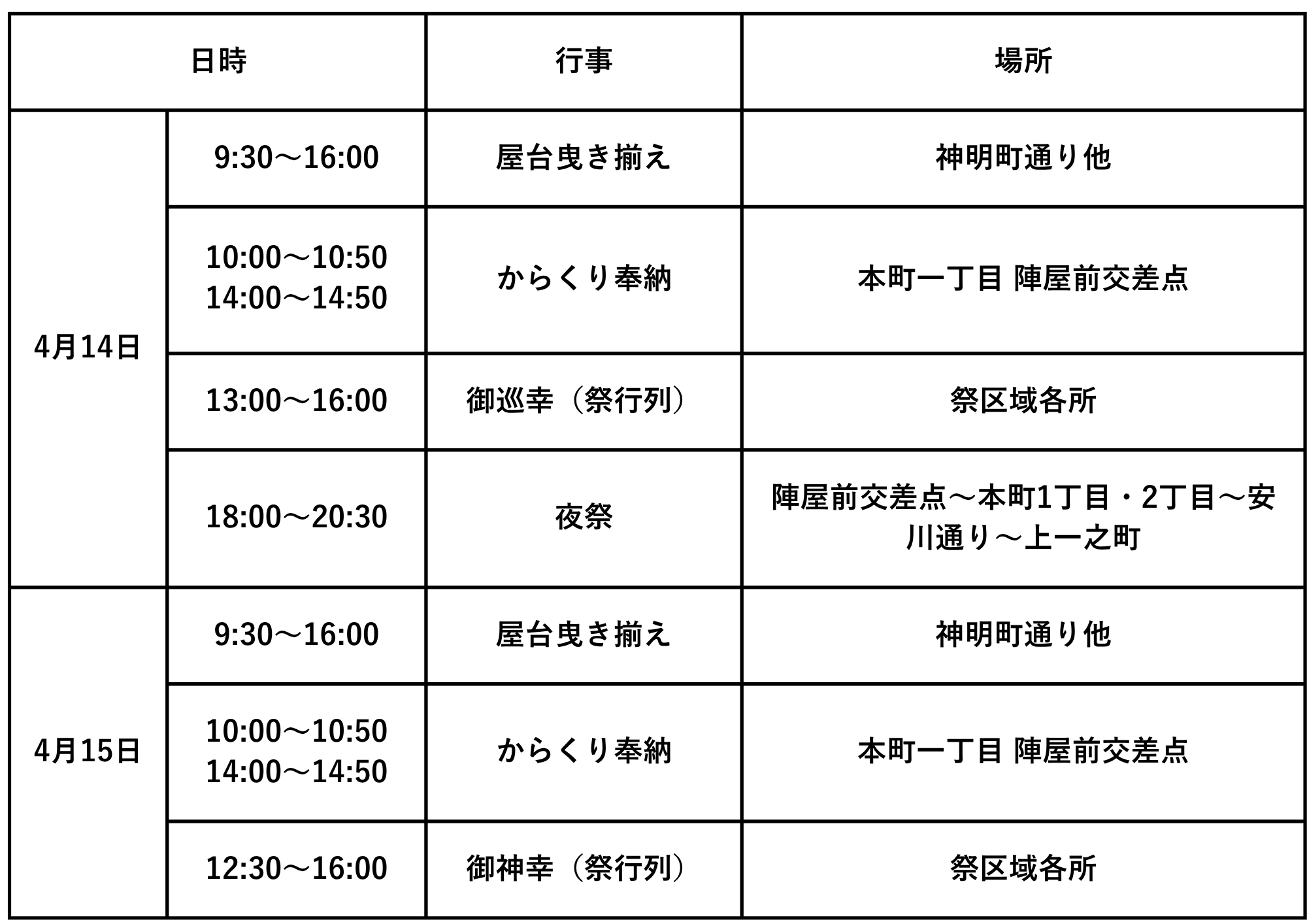 ●春季高山祭(山王祭)活動和時間表(通常每年一次)