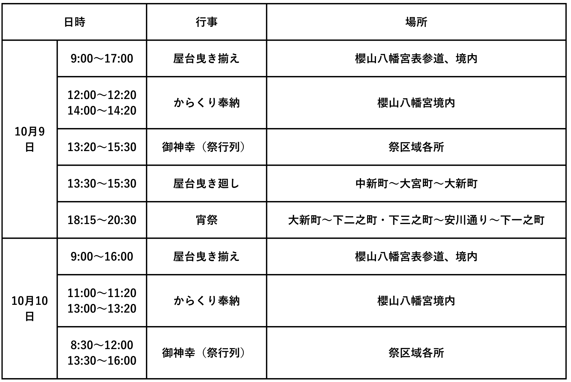 ●秋季高山祭「八幡祭」活動及時間表(2025年)