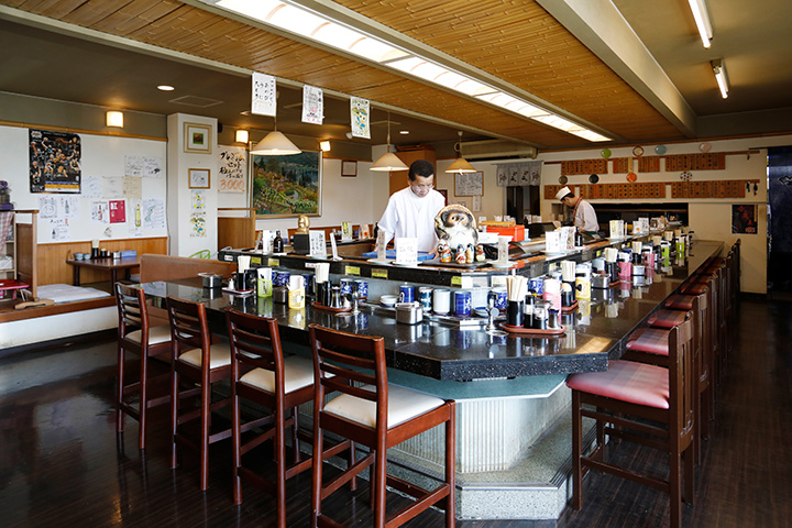 大約45年前開業,是金澤的先驅迴轉壽司店。 從「近江町市場」只有幾家餐廳的時代開始,它就以其輕鬆的壽司口味而廣受歡迎。 即使是現在,他們中也有近一半是當地的常客。 店長每天早上都會去金澤中央市場,購買來自全國各地的時令海鮮。 有時,自說愛好是釣魚的店長會看到能登的外飛釣到的鯛魚、比目魚和魷魚。 我們建議您查看每天更換的“今日長 Chioshi 項目”。