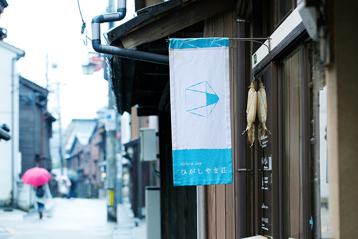 「東茶屋街」兩旁林立著整齊的紅殼聯排別墅,是下雨天散步的時尚時尚場所。 一角的「東山莊」是由1938年(昭和13年)建造的細木工店改建而成的共享空間。 這裡有美國店主出售自己的作品和金澤藝術家作品的工藝品店“akashu”、能登和七尾的人氣雜貨店“Walking Higashiyama”、設計盒子“Hakootsumu”的公司的陳列室,以及藝術課程和繪畫工作室。 這是一個可以享受自己品味的空間的地方。
