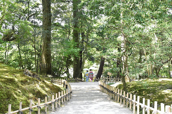 它是日本三大庭園之一,另外兩座是水戶的「海樂園」和岡山的「後樂園園」,也是代表日本的封建領主庭園之一。 據說這一切始於加賀藩第五代領主前田綱樹將別墅周圍區域改造成庭園,歷代封建領主經過長時間完成了如今的大型庭園。 劍六園園的象徵是霞賀池的雙腳燈籠「琴寺燈籠」。 霞蓋家是一個名為蓬萊島的龜形島嶼,外觀會隨著觀賞位置而變化,池塘裡鴨子和蒼鷺玩耍的景象也令人感到安心。 參觀這座大型公園至少需要40分鐘,因此建議留足充足時間參觀。