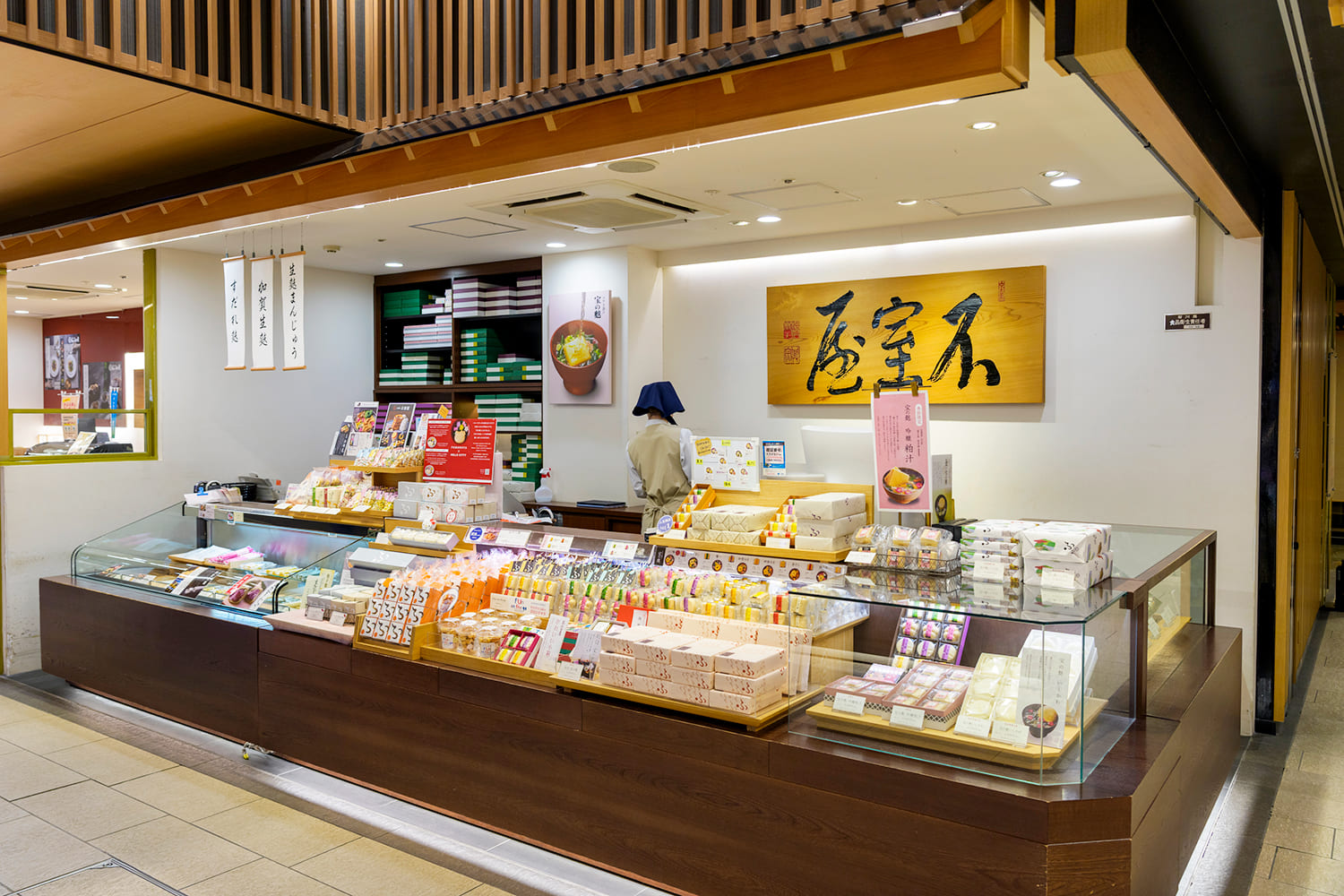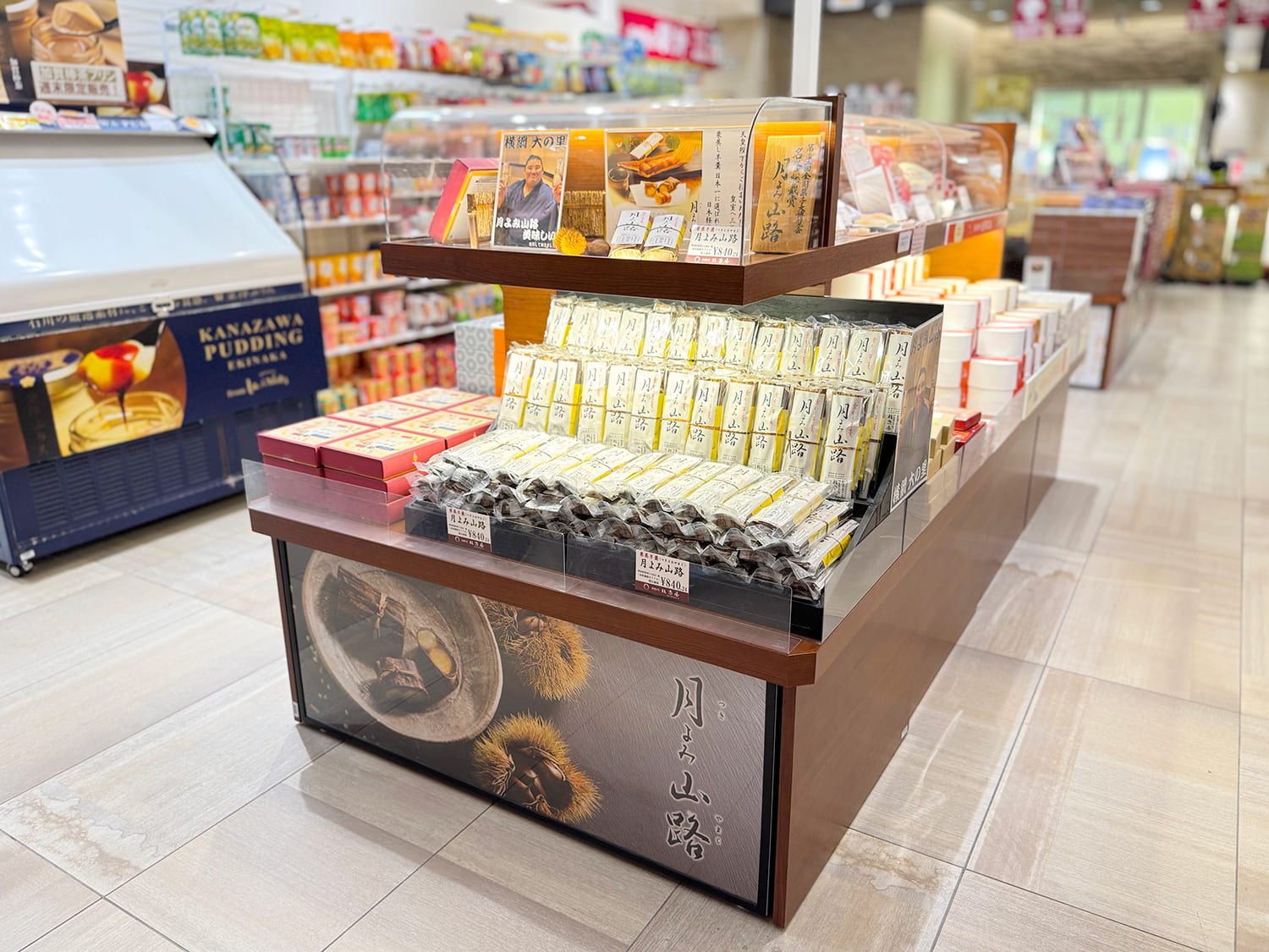 在旅遊資訊中心旁的「金澤紀念品店」,除了北陸著名的甜點和美食外,還販售繪木弁。 這些產品緊密組合在一起,無論是匆忙時還是想在旅途中多買一點時都很實用。
