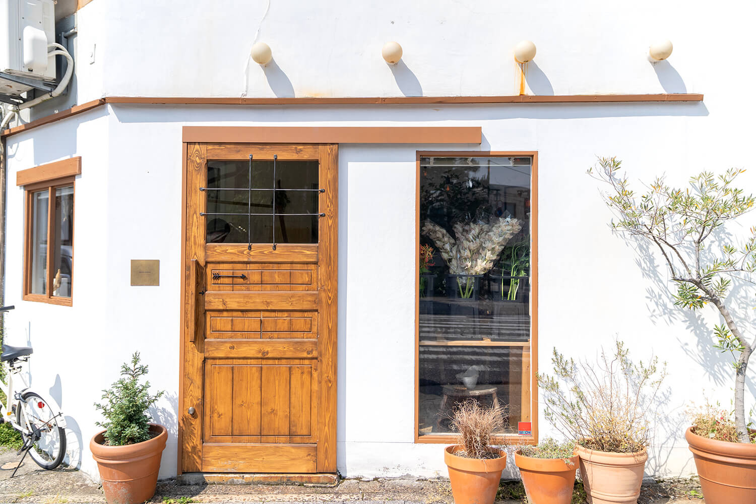 在拓町通入口處有一家小店的花店因其味道而成為熱門話題。 純白色的室內裝飾著柔和暗淡的色彩的花朵和樹枝,同時重視季節感。 所有植物都是購買的,以便可以自由組合並排列在牆上。