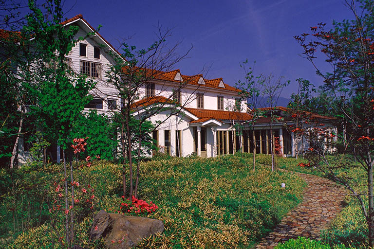 由於餐廳位於山丘上,餐廳的大窗戶可俯瞰北阿爾卑斯山脈及山腳下的鄉村景色。 店周圍是公園,你可以欣賞周圍樹木和植被,像是春天的櫻花和秋天的落葉,四季交錯。