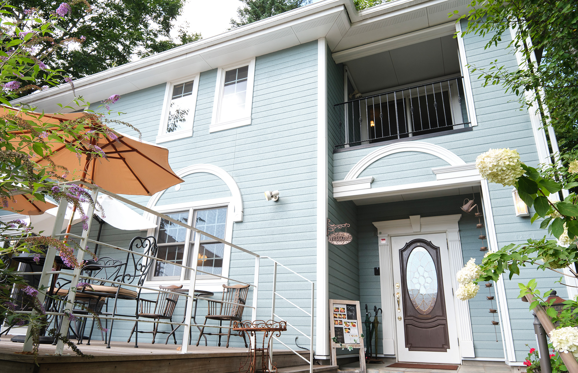 此外,從初夏到初冬,還會出現使用鎮上自有菜園種植的蔬菜製作的菜餚。 店內設有露台,氛圍開放。 桌子之間有足夠的空間,可以推著嬰兒車進店,所以即使帶著寶寶也可以慢慢吃。