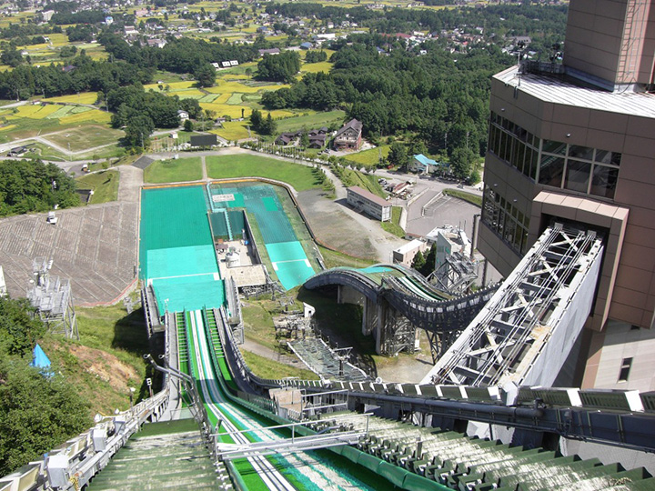 1998年長野冬季奧運會,該體育場曾作為障礙賽及北歐多項運動的場地。 日本跳躍隊在此地贏得金牌,激起許多情感。 這個大型場地位於東京巨蛋約2.5公尺處,兩旁設有兩個跳台,一個是普通的107公尺高的山丘,另一個是138公尺高的大山丘。 搭乘電梯和觀景電梯到起點的觀景台。 從玩家視角看到的風景又高又陡,讓你的腳都縮得又陡。 一幕強烈的場景展開。