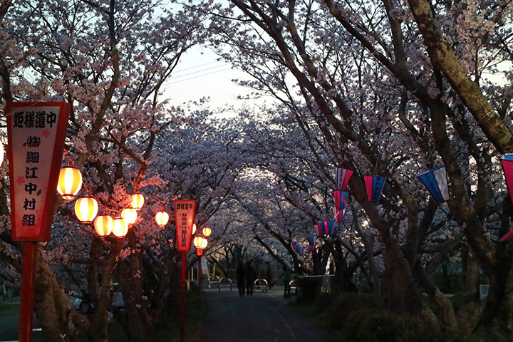 從3月下旬到4月上旬,通常是盛開的季節,大約有500盞燈籠被點亮,晚上可以賞櫻。