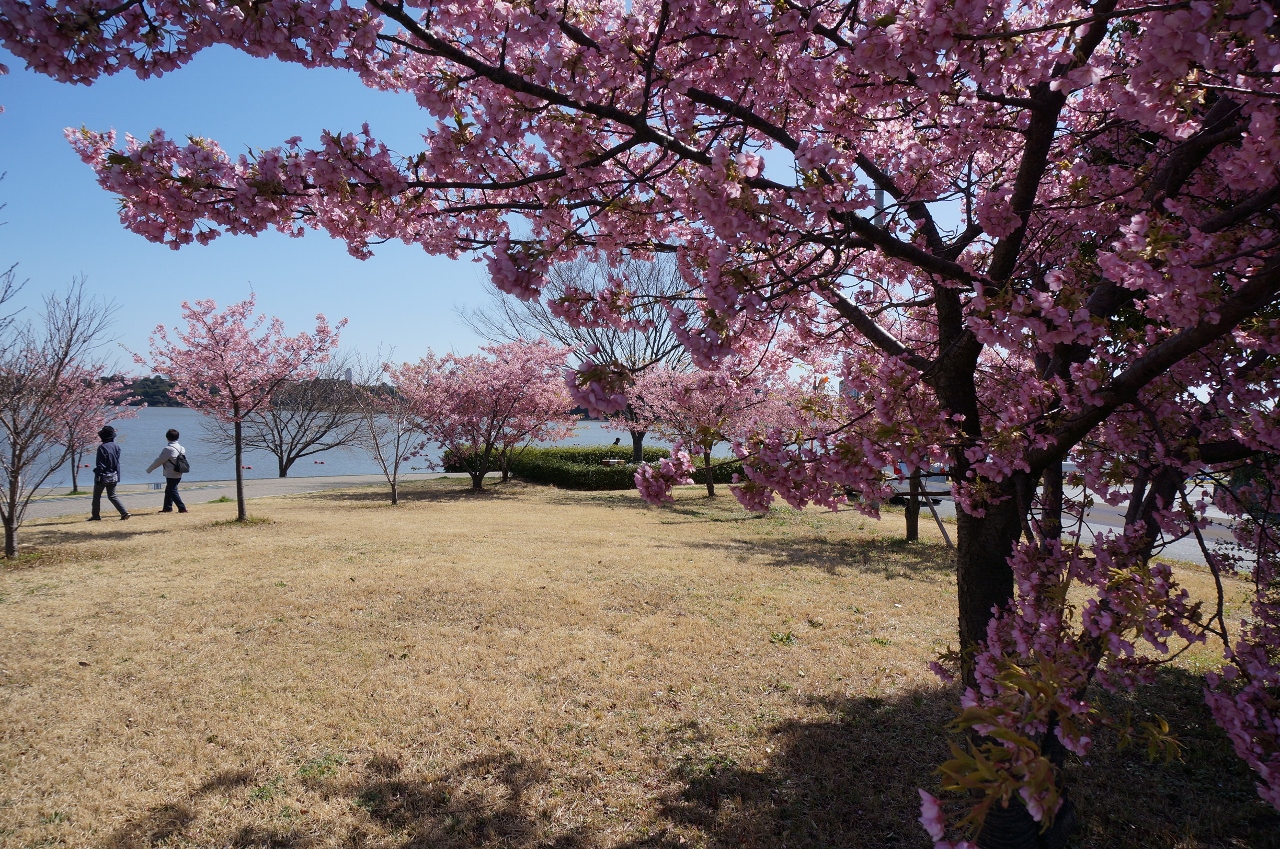 約90棵河津櫻花樹推薦在西南岸的真成湖賽艇場附近觀賞,漢字櫻花推薦在北岸管理大樓附近觀賞。 染井吉野因西岸富塚花見台和葫蘆池周圍的櫻花樹而廣受歡迎。 另外,盛開的季節,東岸的道路上會形成一條櫻花隧道,可以欣賞到美麗的風景。