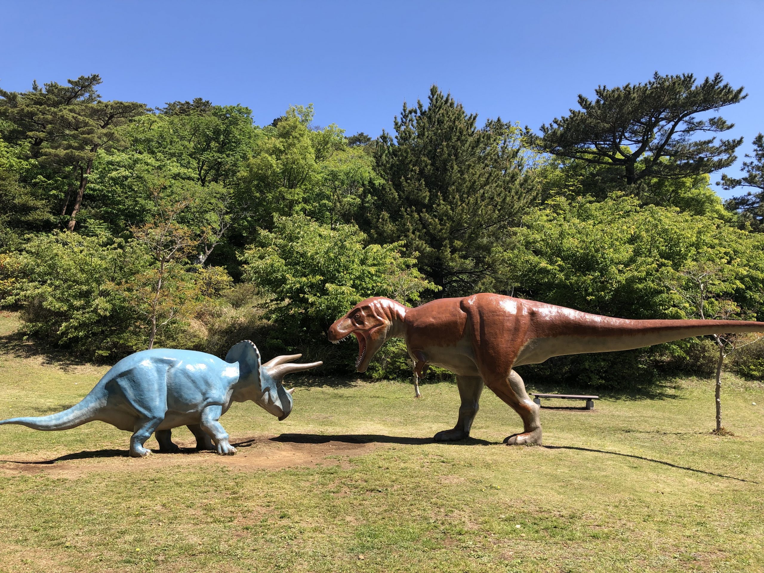 大到可以仰望的恐龍紀念碑散佈在廣場和森林中