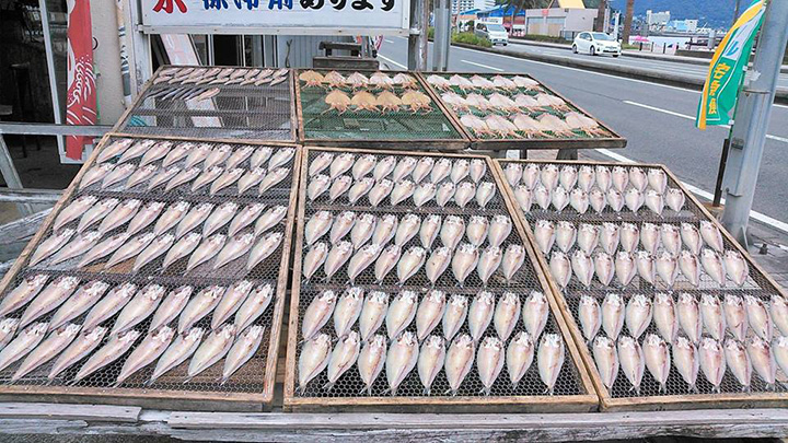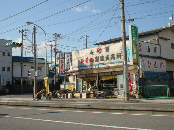 一家位於東伊豆海岸線135號公路旁的乾魚店。 在晴朗的日子裡,曬乾的魚會排成一排排在店門口。 主要在伊東炸製的當地魚類,購買的海鮮包括乾魚和鹹魚。 自製的乾魚以肉質厚實酥脆著稱,且都被認為味道豐富。