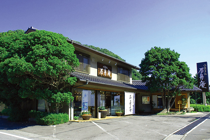 伊豆一家歷史悠久的糖果店。 餐廳的代表產品是「石船饅頭」,這是一種薄皮,揉入沖沖繩紅糖,內餡豐富紅豆沙。 風味濃郁且飽滿的麵團與優雅的紅豆醬搭配,令人驚嘆。