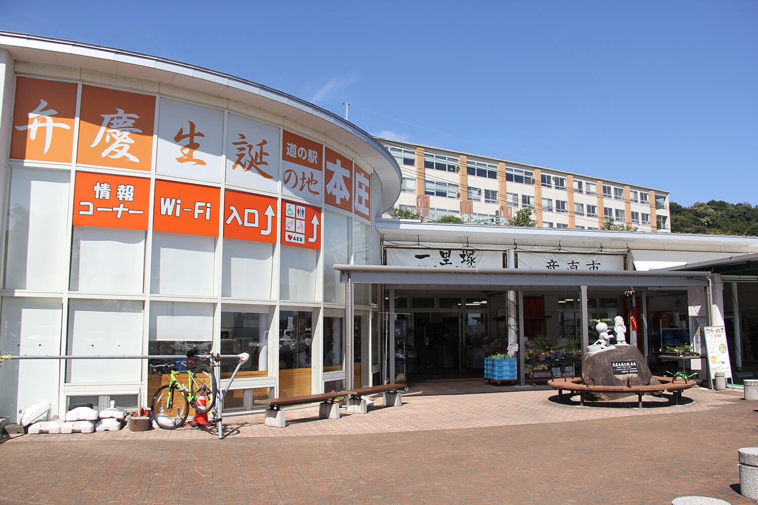 販售本城路邊車站,前方可眺望中海,從停車場和觀景綠地還能看到著名的大山山峰和大田島。