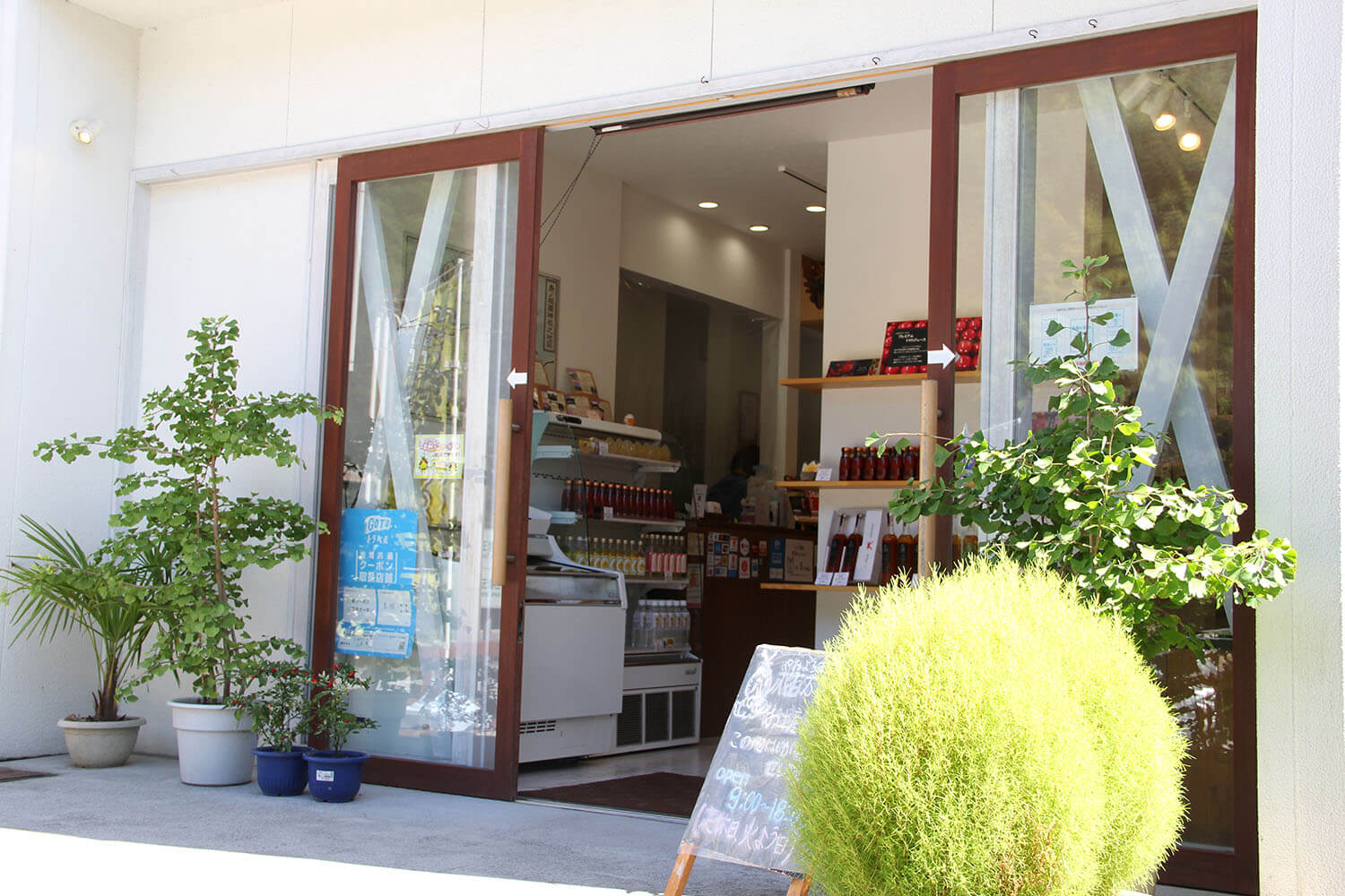 我們推薦「高級番茄汁」,它是用松江市的甜櫻桃番茄煮沸製成。 你可以享受到接近果汁的濃郁新味。 還有生產區直接送來的季節禮物,是尋找豐富紀念品的完美選擇。