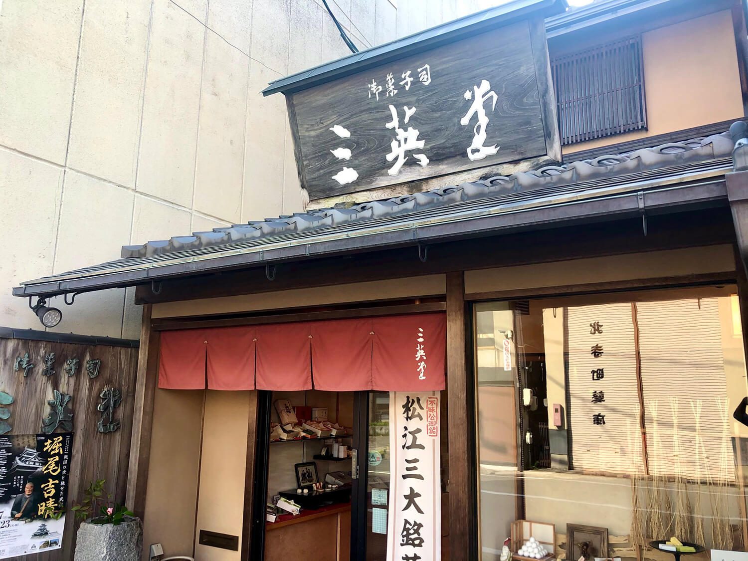 寺町週邊距離JR松江站不遠,是歷史悠久的和菓子店林立的地區。 三永堂也位於一角,擁有令人印象深刻的老式瓦頂店面,自昭和初期創業以來,它一直將傳統的松江甜點傳承至今。 他的代表作是“富明子三大名點心”之一的《油菜園》。