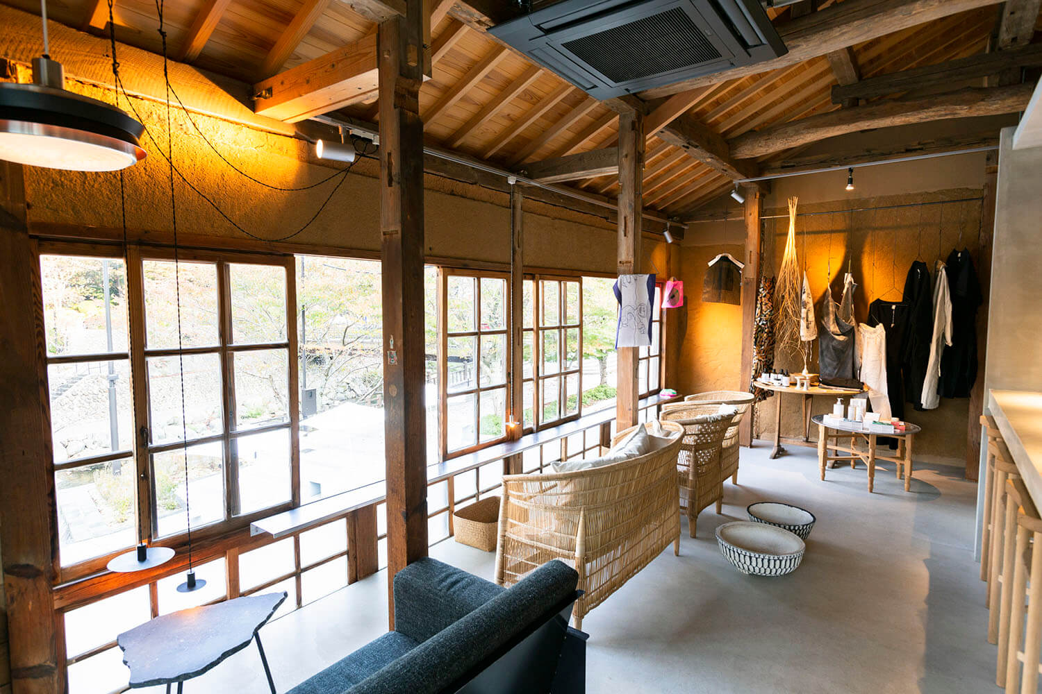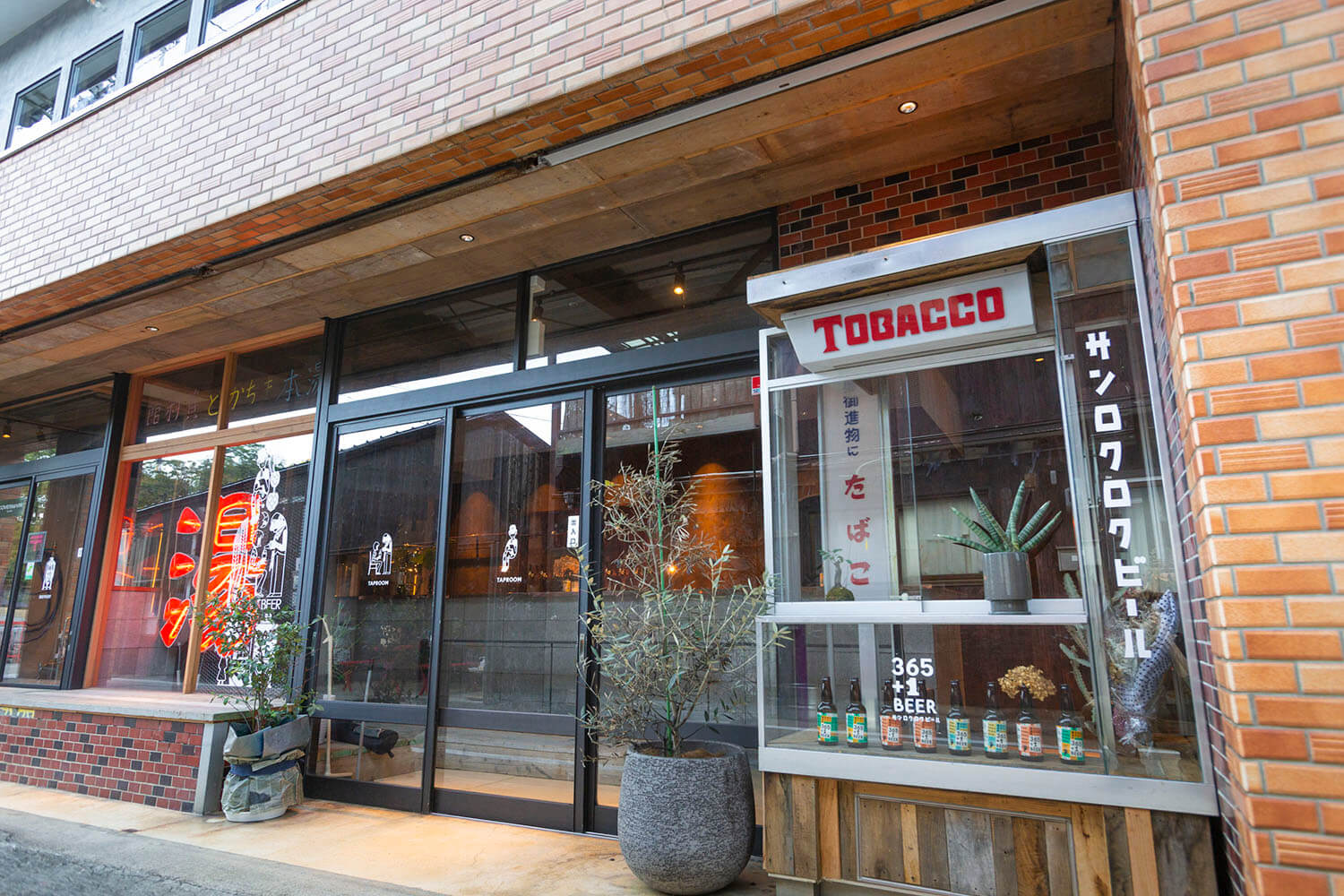 該建築是一棟翻新的60設施,前身為藥局。 香菸銷售區以及結合前代Onyu霓虹燈的上鏡內裝也是熱門話題。 在保留原始鋼架與瓷磚的同時,銅板被用於檯面及其他物品,營造製造場所的氛圍。 在逐漸適應這個溫泉町的同時,也讓你感受到長長門湯本溫泉的現況,這個地方也在不斷演變。