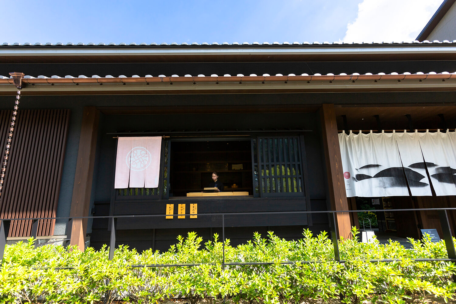 內部設計符合旅館「主君御茶屋宅邸」的主題,並以古董家具及當地傳統工藝「萩燒深川窰」的作品,營造出莊重的氛圍。 旅館前的河邊路上也有長椅,可以一邊欣賞清澈的溪流一邊享用點心。
