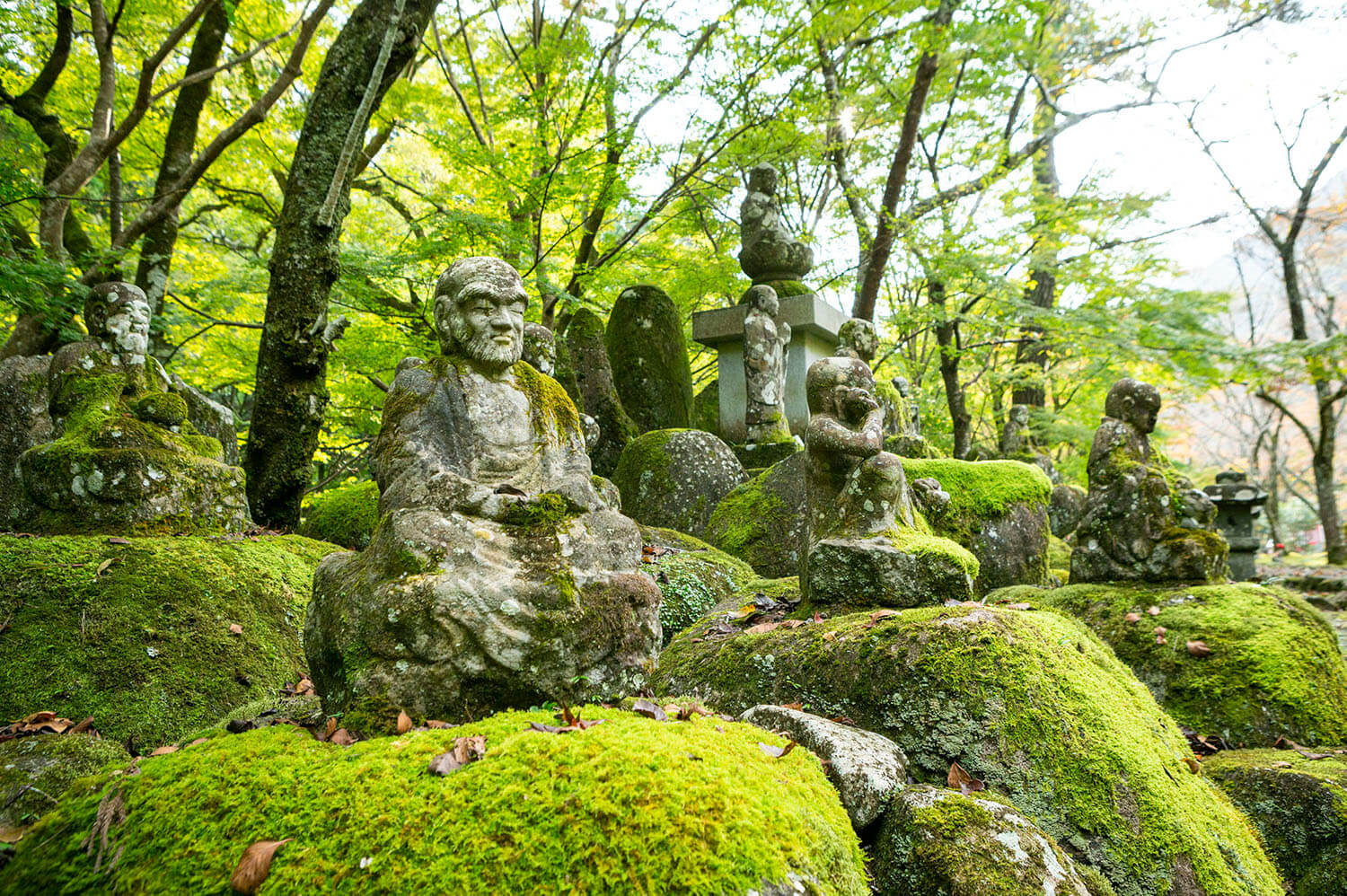 大殿後方山上排列著大內氏第31代的墓地,他們在山口縣建立了龐大的文化,以及他的嫡子,也就是他的家臣。 還有一個池塘,因叛亂被追捕的義孝因未映照在水面而得知結局,還有一塊據說懸掛頭盔的岩石。 此外還有許多其他景點,如十六羅漢像、歷史博物館和長門豐川稻荷。