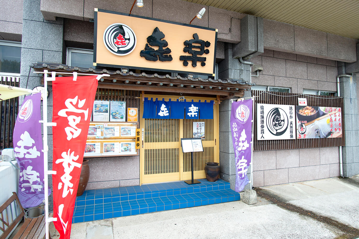 仙崎的老字號餐廳,以海鮮釜飯聞名。 招牌菜單是“Uni Kamameshi”,使用大量來自北浦的生海膽製成。