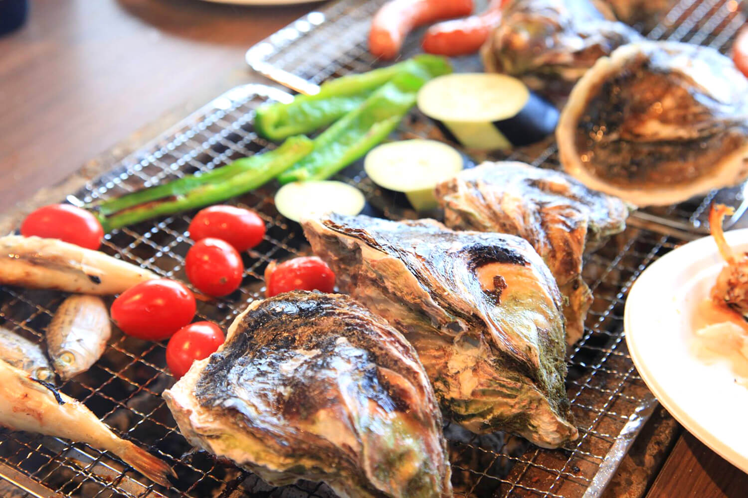 一邊看著大海一邊用炭火享用海鮮燒烤