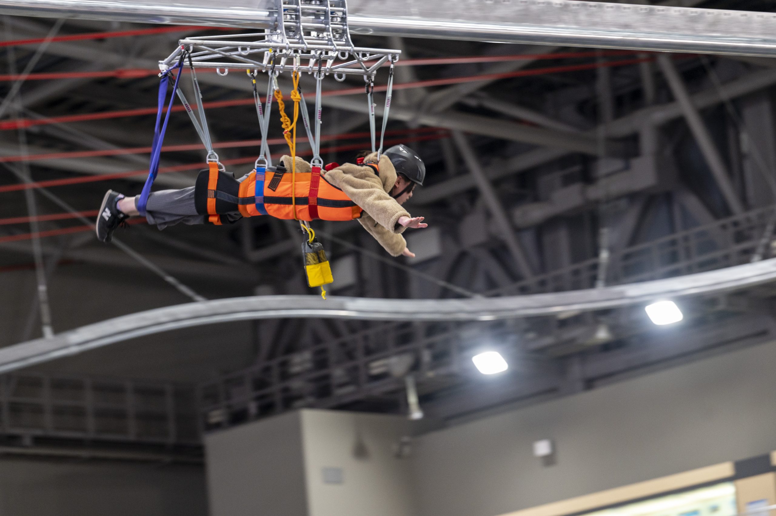 “讓我們在天空中飛翔”滑過博物館。 它很刺激,因為它在不使用動力的情況下自由落體(有身高、體重和年齡限制)