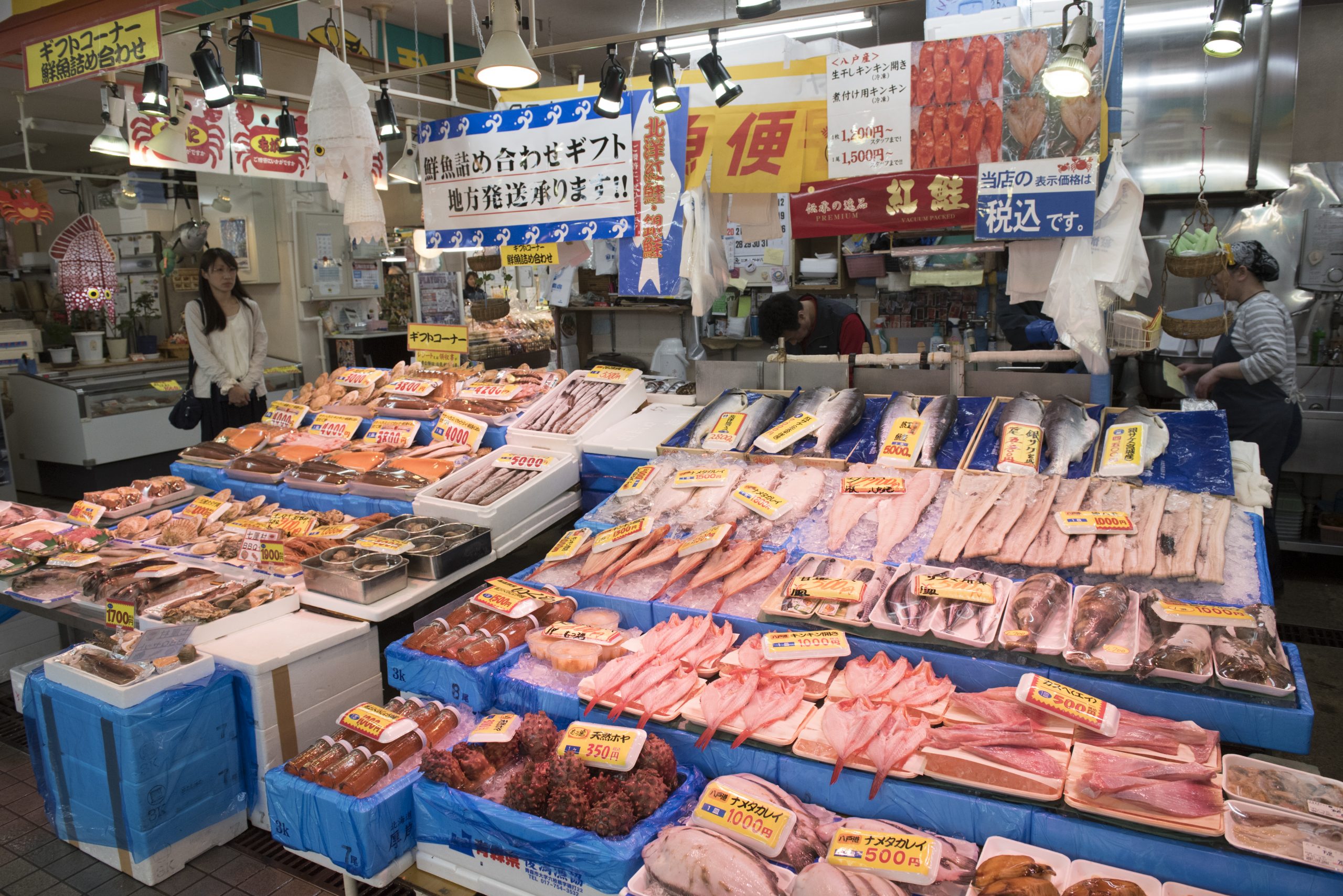 行程的最後一站是一個巨大的市場,青森的美食匯集在這裡。 約有60家商店,出售八戶港上岸的海鮮、新鮮採摘的蔬菜和水果、乾貨和糖果。