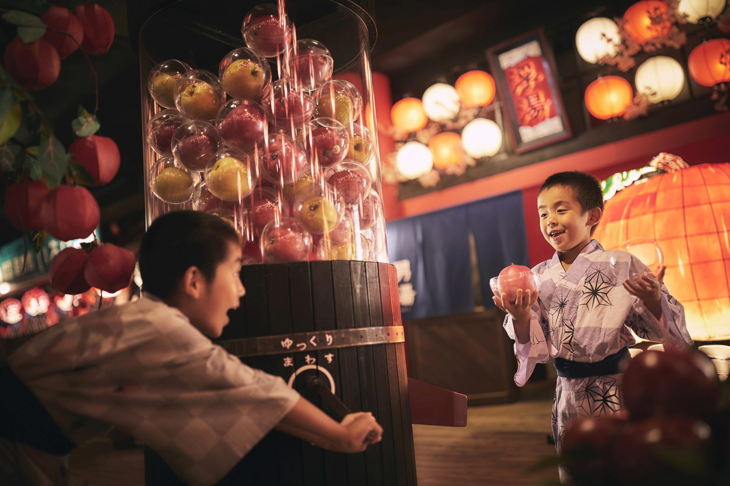 「蘋果扭蛋扭蛋」將一整顆生蘋果裝在特製膠囊中,是秋天享受的一件有趣的事情。