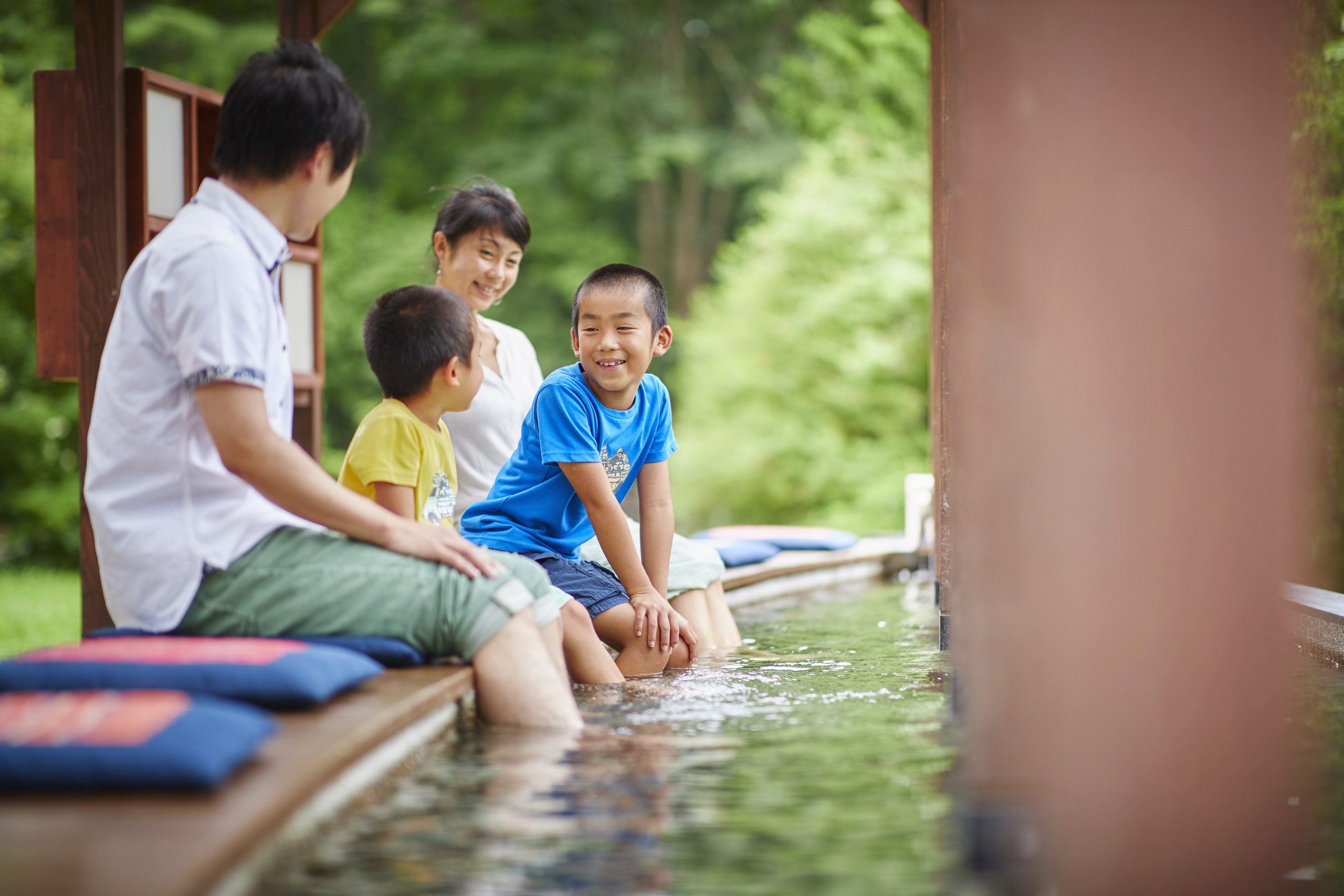 散步後,在公園的足浴裡談論旅行的回憶很有趣。 有毛巾,可以空手前來。