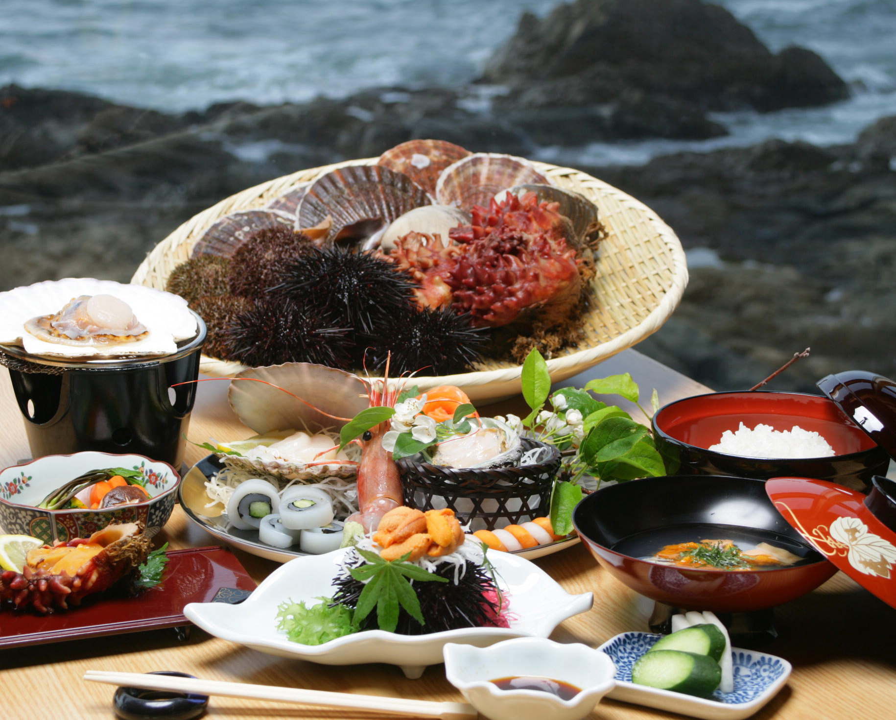 一邊眺望大海,一邊享用豐富的時令海鮮的豪華午餐