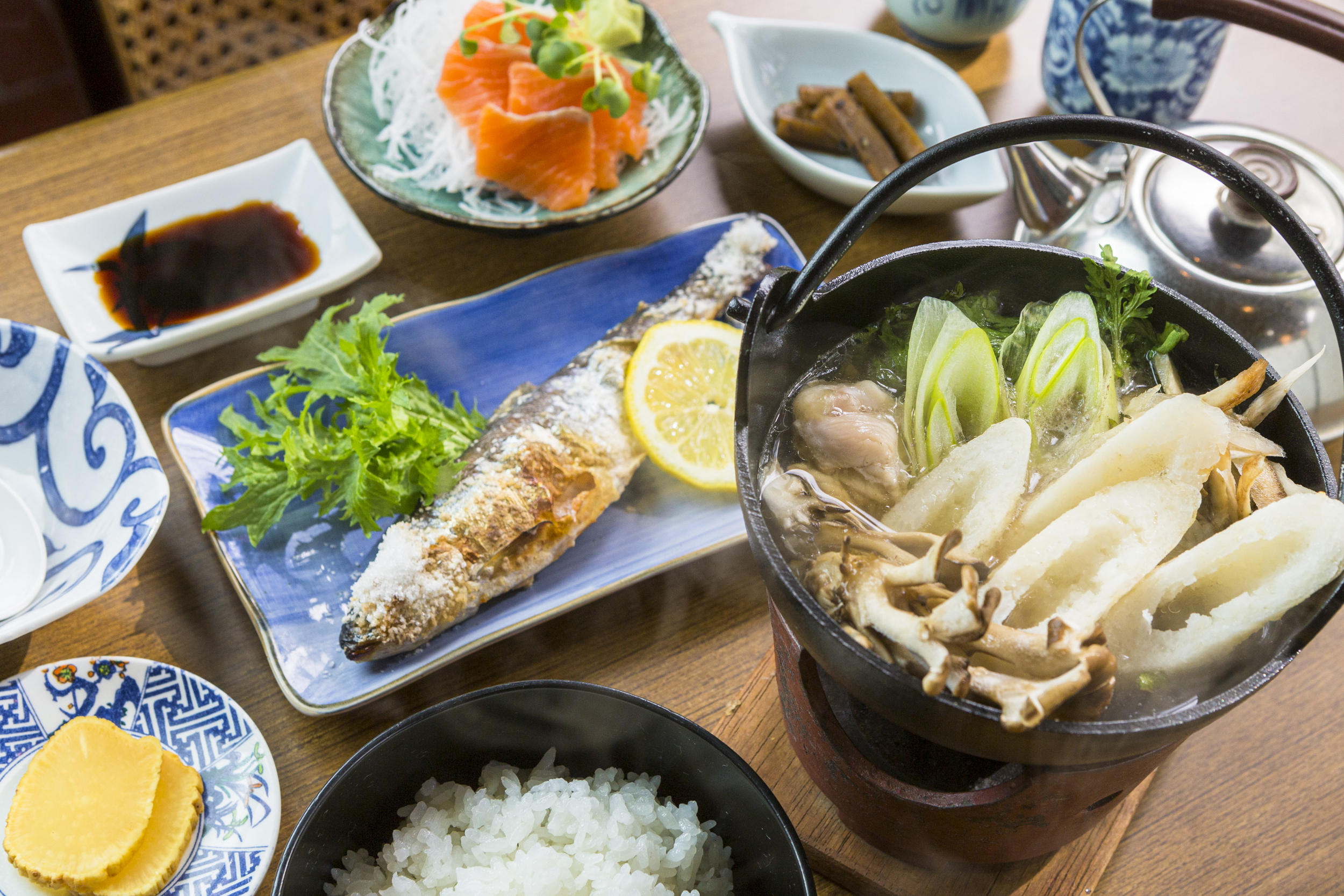 巴士遊覽回來後,我們前往奧入瀨溪流的源頭十和田湖。 這家餐廳位於湖畔,以其青森縣和秋田縣的當地美食而聞名,例如使用十和田湖著名的姬鱒魚和切丹波火鍋烹製的菜餚。 姬鱒魚是鮭魚科的淡水魚,顧名思義,其特點是外觀和顏色都很漂亮。 明治時代,我們成功培育了姬鱒魚,現在它已成為「十和田湖姬須」的地區品牌。