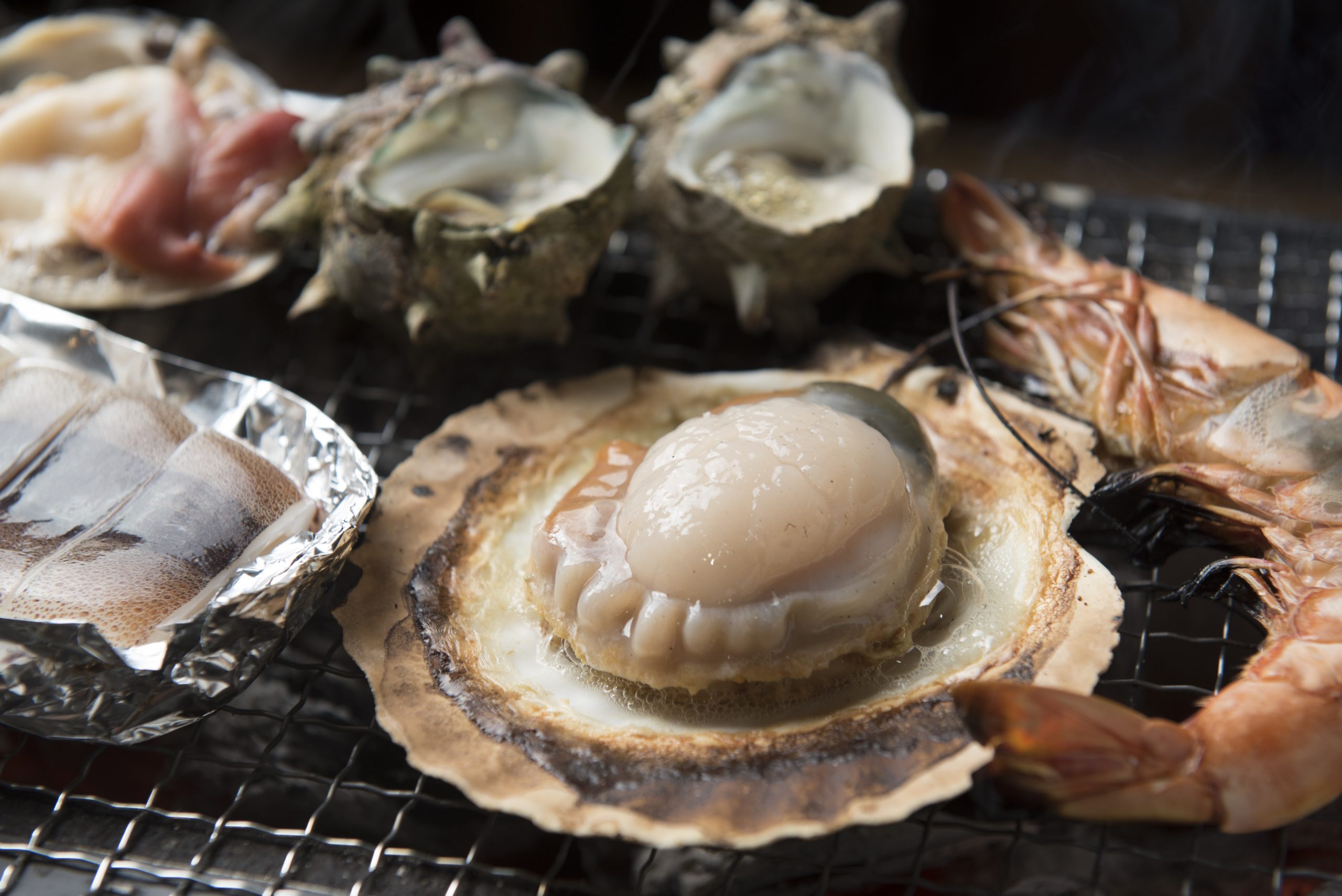 最好的午餐是“七里村”,您可以在炭烤架上享用在現場購買的食材。 您可以根據自己的喜好享用扇貝、蝦、魷魚、牡蠣等時令海鮮和牛肉。 先付了使用費,找到座位後,我四處逛逛,尋找食材。 新鮮的海鮮店裡擺滿了新鮮的海鮮,但如果您有疑問,請向商店尋求建議。 如果你在購物時告訴他們你會在七里村烤吃,他們會把它切開,以便更容易烘烤。