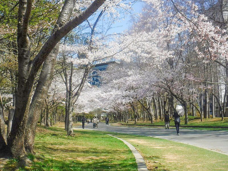 札幌市內最著名的賞櫻勝地之一是圓山公園,在廣闊的場地上設有體育場和體育場。 公園管理事務所周邊和「坂下棒球場」所在的地區,約有150棵蝦夷山櫻、染井吉野、八重櫻、垂枝櫻等,許多人可以在相鄰的「北海道神社」境內欣賞賞櫻。