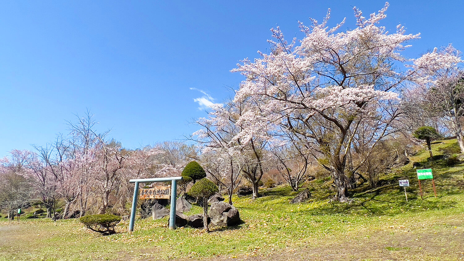 主廳那古樸的茅草屋頂與超過兩百年歷史的櫻花樹形成鮮明對比,氣氛十足。 其中著名的「石輪櫻花」以其能突破巨石、生根並伸展枝條的強烈外觀著迷。 這裡也有許多上鏡景點,例如散布在山坡上的烏須山大灰燼與櫻花、公園停車場附近的櫻花隧道,以及垂柳的櫻花。