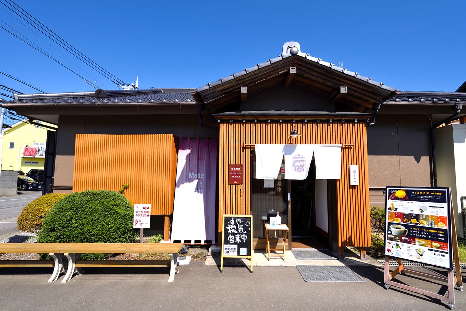 穿過靛藍的商譽,打開入口處的拉門,進入店內。 入口處有鞋架,脫鞋上去。 兩間餐廳的佈置舒適,有榻榻米座位、桌子座位和吧台座位,可以伸展雙腿。 最受歡迎的甜點菜單是「麻糬華夫餅」,上面放著酥脆的麻糬華夫餅和冰淇淋,手推車上淋上了土浦芝沼醬油「Shimine no Drop」製成的蜂蜜醬油。 以店內為基礎的各種文化活動也很受歡迎,進一步活躍了土浦市。