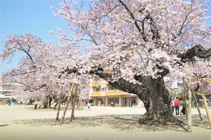 在小學的操場上種植了五棵染井吉野樹。 它被命名為“真鍋之櫻”,被指定為茨城縣的天然紀念物。 1907年(明治40年),它始於畢業生為紀念新校舍竣工而送來的一棵樹苗,現在已長到最大高度11米,樹幹周長5.1米,四面八方優雅生長的樹枝長達20米,顯得莊嚴。 花季絢麗得讓人感嘆不已。