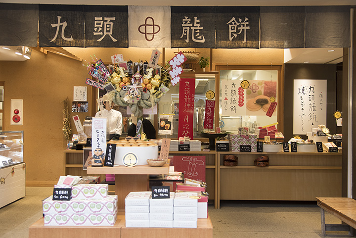 「福久佐屋九頭龍麻糬」以其在店內工房製作的原創甜點而廣受歡迎。 招牌菜是烤麵包「九頭龍麻糬」,包裹在Q彈的麵糰中。 我們講究國產食材,餡料使用北海道十勝的紅豆,外皮採用九州米粉「日極餅」米粉和小田原的馬鈴薯澱粉混合。