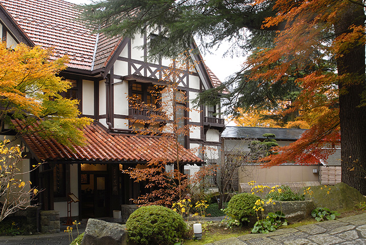 該建築由壽仁親王於昭和初期建造,作為暑假的別墅。 外觀採用半木結構風格,中世紀歐洲讓人聯想到中世紀歐洲,內部則採用20世紀初的裝飾藝術風格。 曾經是宴會聚會的餐廳,以及擁有各種口味包廂的豪宅,充滿了優雅和優雅。 窗外的綠樹和紅葉就像一幅畫,進一步增強了時令美食的魅力。