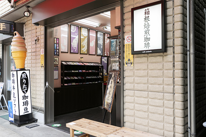 這是一家位於箱根站前街道上的咖啡豆專賣店,許多日子販售超過1,000顆「軟咖啡牛奶」。 原創的軟霜淇淋冰淇淋,是為了「享受與黑咖啡的良好相容性」而設計,在咖啡的苦樂參半風味與牛奶的醇厚口感之間取得了絕佳的平衡。 其溫和的甜味和清新的口感在男性中很受歡迎。