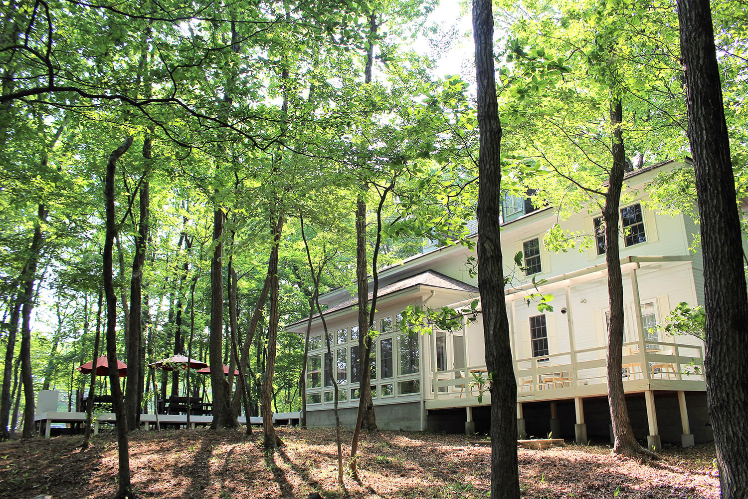 那是那那須「芬蘭森林」中一棟純白色建築、四周被樹木環繞的咖啡館。 在這充滿斯堪地那維亞氛圍的空間裡,鬆軟濕潤的鬆餅正等著你。