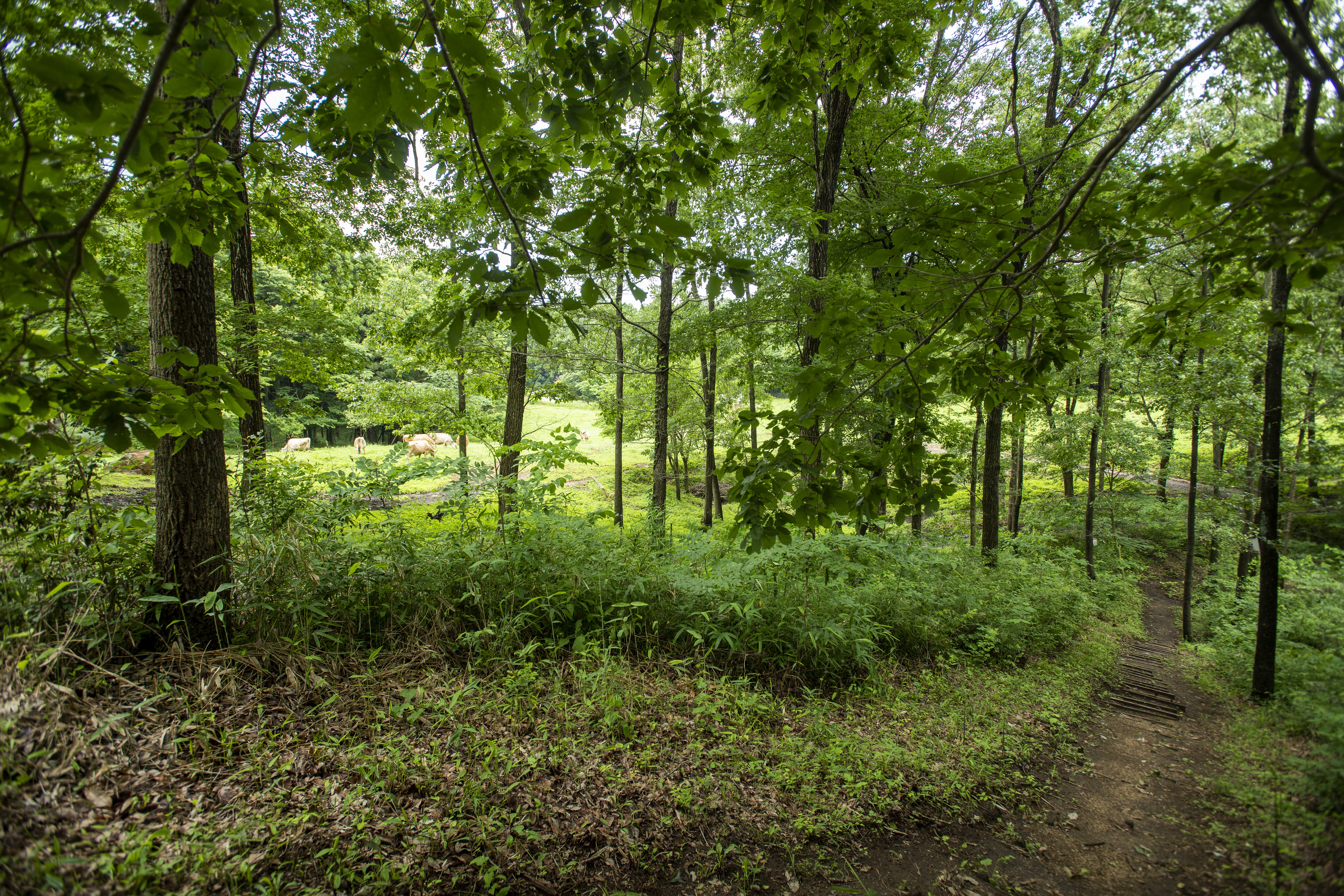 牧場佔地約8公頃,長滿了橡樹、橡樹、栗子等樹木,到處都有平緩的起伏。 沿著牛群在穀倉和牧場之間來回穿梭的道路平行而建的長廊,大約需要450米,大約15分鐘即可到達最裡面的牧場。