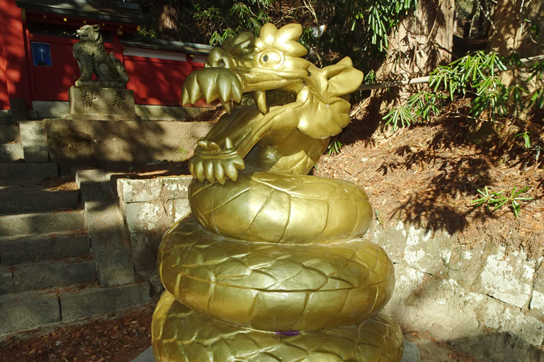 在日光,有傳說過去南台山的神變成了一條巨大的蛇,赤城山的神變成蜈蚣,在戰場上爭奪領地。 贏得戰役的南台山蛇後來被尊為勝利與勤勞的守護神。 此外,因為蛇以盤繞的身形出現在山中,過去人們害怕蛇是山中的神。 因此,在「雙子山神社那康宮神社」入口附近,供奉著金色的「南台山大蛇神像(綽號:金針大蛇)」,據說你會獲得財運與健康福祉。