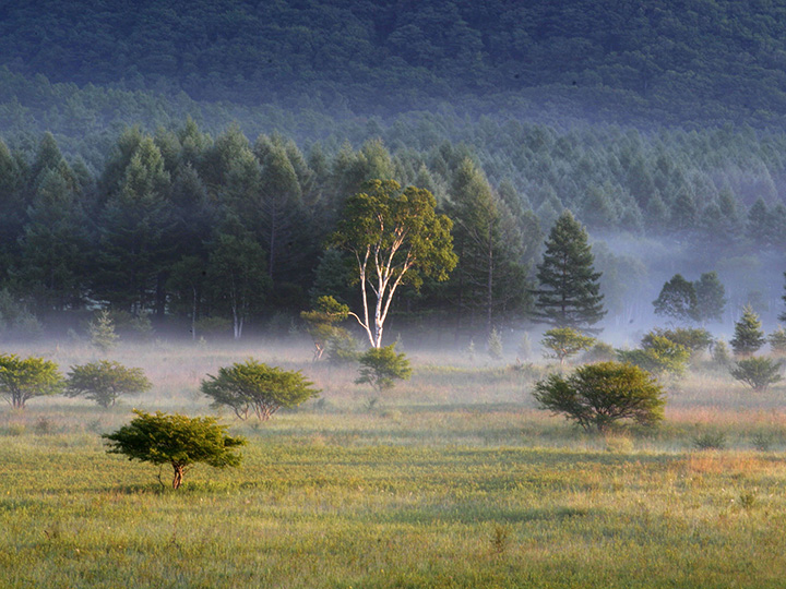 小田湯原被註冊為拉姆薩爾公約(*)濕地,被公認為國際重要濕地,特別是作為水禽的棲息地。 這裡也是濕地向草原過渡期的稀有濕地,因此具有動植物種類繁多的特點。 周圍環繞著杜鵑花和落葉松的森林,秋天時,整個地區都長滿了草地和紅葉,為風景增添了色彩。 在陽光明媚的日子裡,您可以看到沼澤之外的南體山。
