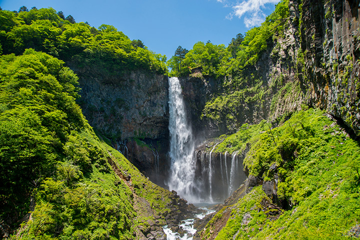 從中禪寺湖流出的湖水從97公尺高的碼頭上一下子流下來,讓觀者不知所措。 它也被認為是日本三大瀑布之一。 除了轟隆隆落下的主流外,還有幾股泉水從中間的岩石中流下,被稱為十二瀑布。 如果您想拍出震撼人心的照片,請乘坐電梯穿過基岩下降 100 米,到達瀑布盆地附近的觀景台。 在近距離觀察4.5公尺深的瀑布盆地的同時,您可以從下方仰望日本引以為傲的瀑布。