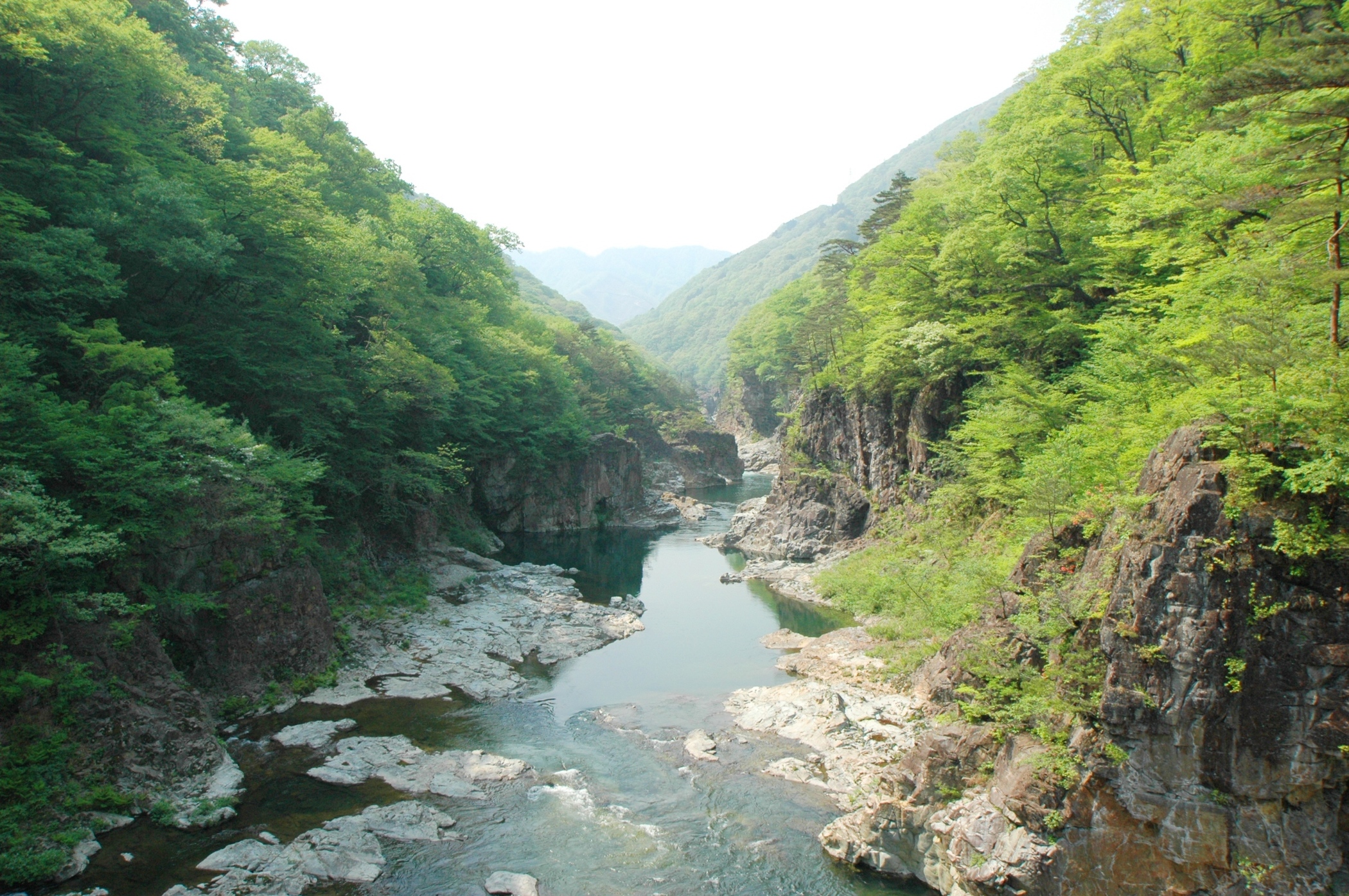河流穿越陡峭的懸崖,擁有獨特的山谷美景。 據說它的名字是因為它讓人聯想到一條龍憂鬱的樣子。 約2200萬年前,因海底火山爆發而噴發的火山岩被鬼怒川沖刷而出,形成了現今的形狀。 從上游分為三個區域:獅龍峽谷、青龍峽谷和白龍峽谷,每個區域都能享受不同的氛圍,例如岩石表面顏色的差異。 山谷有一條長達6公里的自然探險路線,你可以依照時間和體力選擇散步。 賽道上有許多壯觀的地點,岩石與水域交織交織。