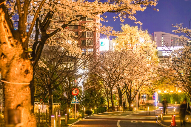 OMO3 東京赤坂 by 星野集團。 赤坂坂須是一個包含TBS及文化資訊傳播基地的綜合設施,種植了約100棵11種櫻花樹。 夜晚櫻花在建築城燈光照亮下綻放,是赤坂獨有的景象。 這裡也被推薦作為約會地點。