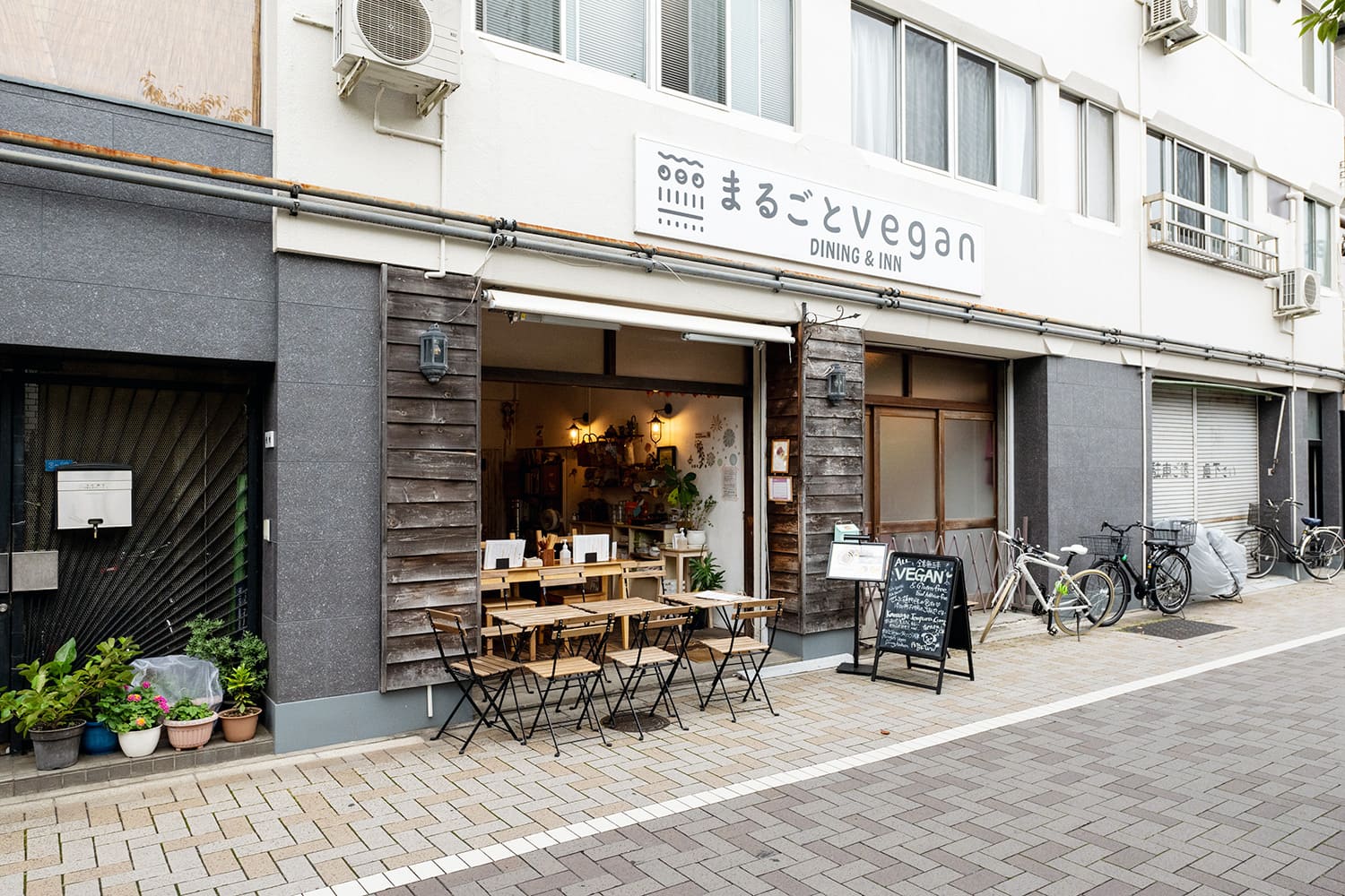 隅田川沿岸的餐廳,有一家商店。 他們提供不含肉、魚或乳製品等動物產品的純素食品。