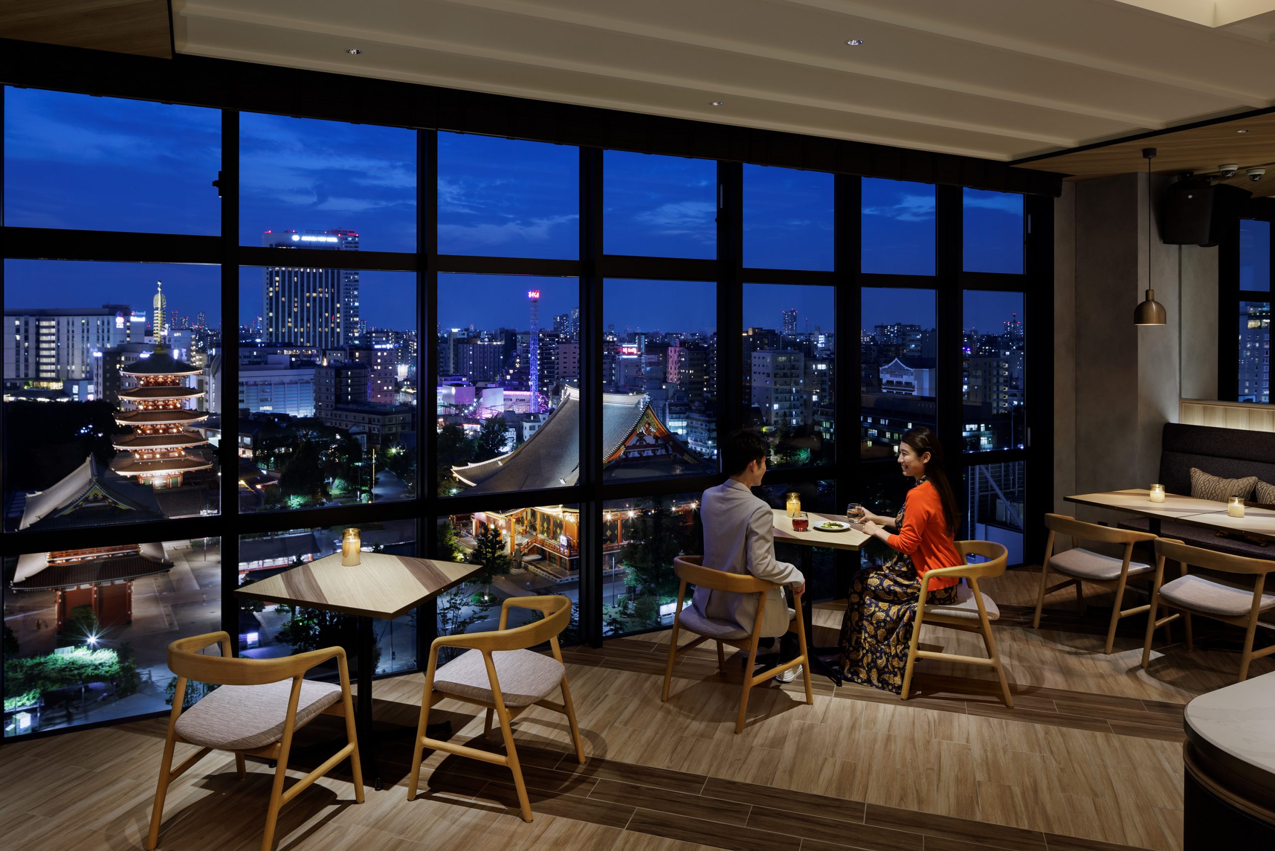 頂樓的「OMO Base」是高級空間,能俯瞰淺草的夜景全景。 欣賞仙總寺與東京空樹®的美麗景象,手捧一杯美酒,深入交談,真是幸福無比。 你可以沉浸在餐後的餘韻中,心情優雅。