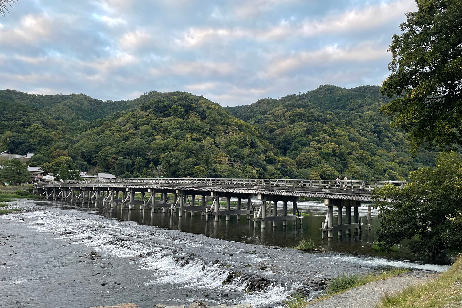 一座全長約150公尺的橋樑,橫跨流經佐賀野與嵐山的大井川(桂川)。 借用的嵐山景觀極具品味,是京都最具代表性的景觀之一。