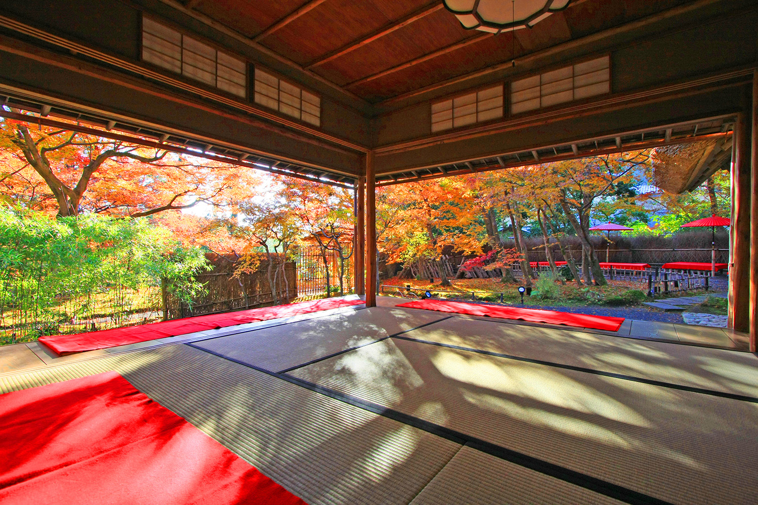 此外,園區內的「四尾院庭園」被認為是日本首座平庭乾性景觀庭園,並被指定為京都市的風景名勝。 隨著秋天漸深,你可以在花園裡享受採摘秋葉的樂趣,這裡借用了紅黃相間的嵐山作為景觀。