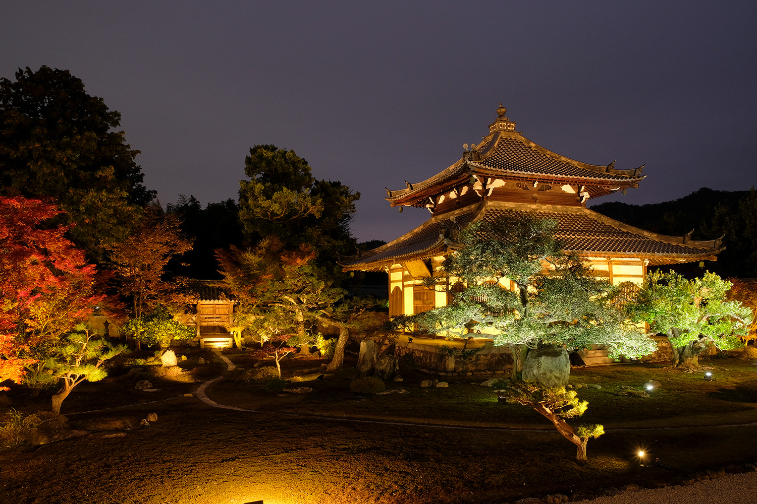 每年紅葉季節,都會舉辦一場特別的夜間參觀活動,照亮參道和花園。 佛牙舍利、庭園等院內被柔和的光線所籠罩。