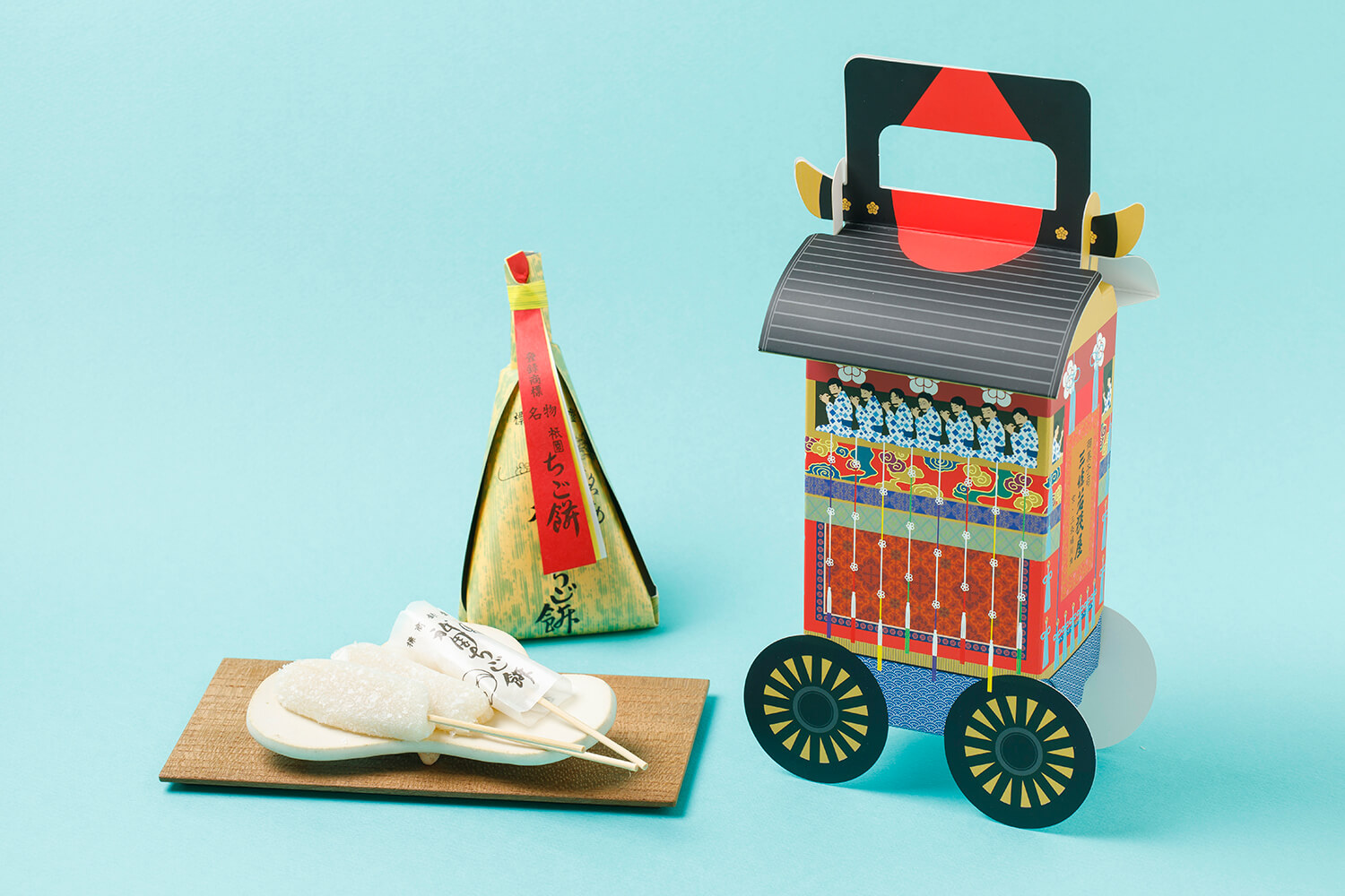 在山鉾町附近,位於四條通的老字號「龜屋吉永」也將出售與祗園祭相關的商品。 這是一種類似於展示在山前或鉾前的“駒形燈籠”的糖果。 白味噌豆沙包裹著軟豆餡,輕輕地印有八坂神社徽章的烙印。 微微透出的粉紅豆沙,就像黃昏時點亮的燈籠的光芒。 此外,還有幾款以節日設計為特色的著名甜點,請務必前往店內看看。